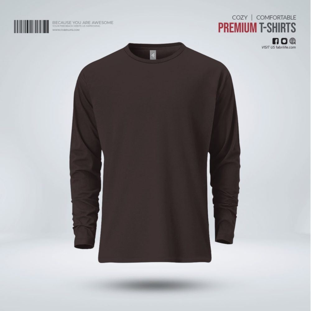 Mens Premium Blank Full Sleeve T-Shirt - Chocolate