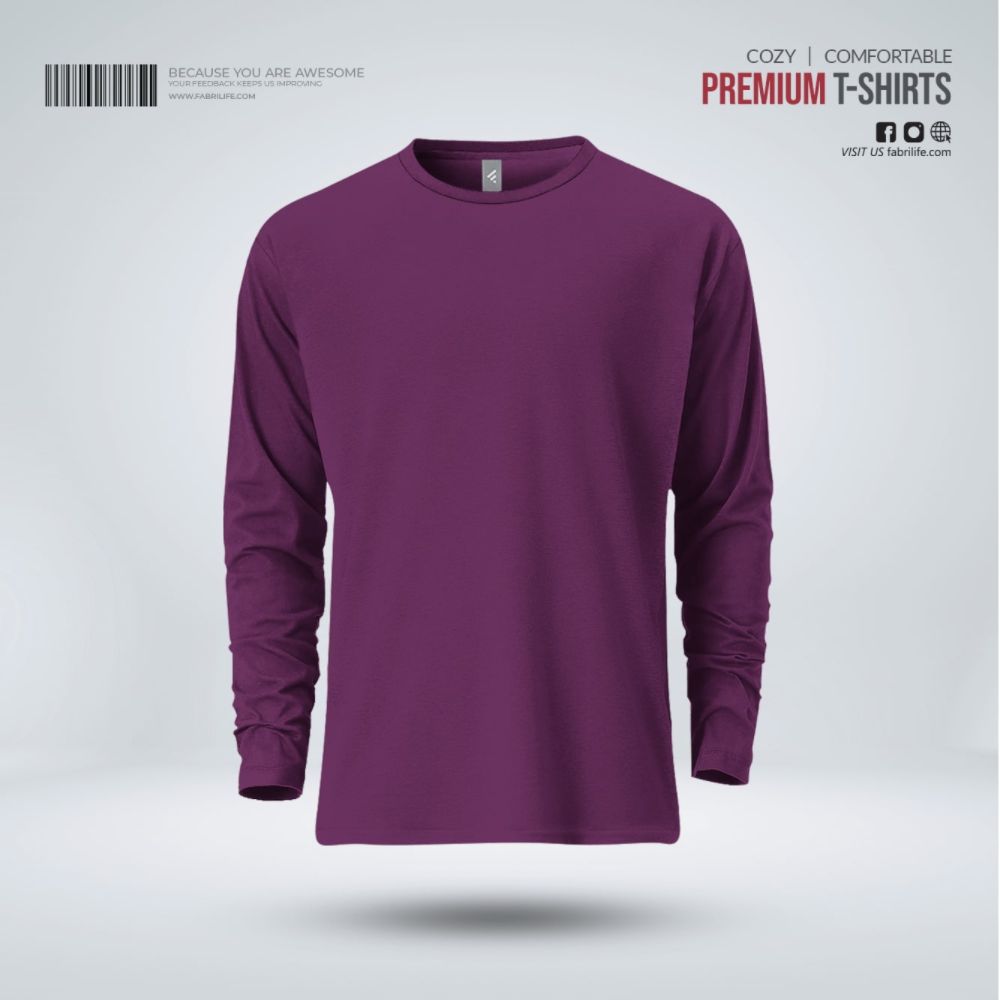 Mens Premium Blank Full Sleeve T-Shirt - Purple
