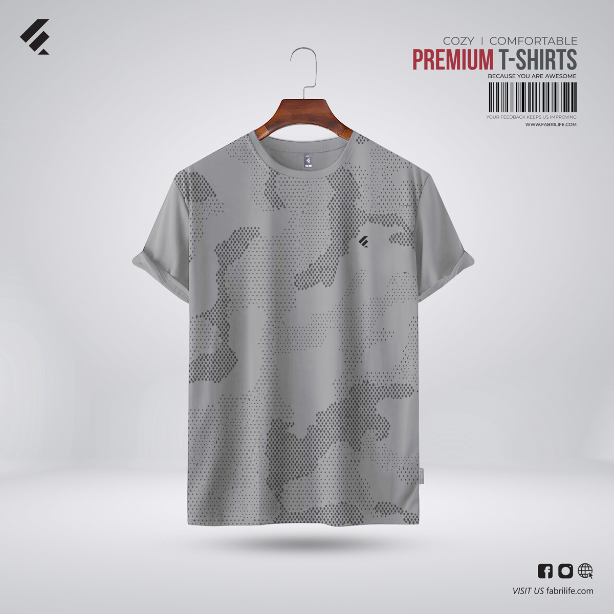 Fabrilife Men's Premium Quality t-shirt offers a smoother, silky feel and a more structured, mid-weight fit than regular t-shirts. The t-shirts are made with the finest quality Combed Compact Cotton, featuring an astonishing ~175 GSM on just 26's cotton, which provides a smooth and compact construction.