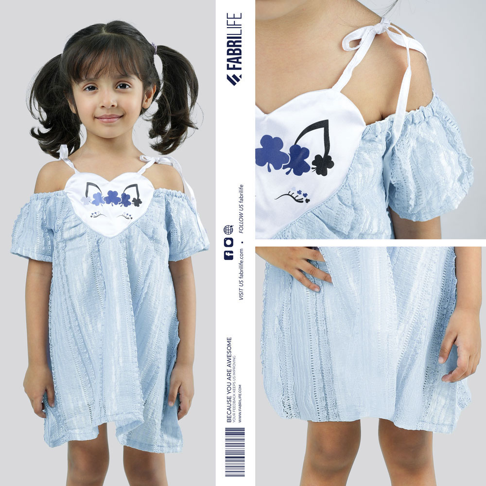 This sky blue A-line frock dress is a must-have for your baby's wardrobe. The cut-out love shape adds a touch of whimsy and romance, making it perfect for Valentine's Day, birthday parties, or just a casual day out. The georgette lace fabric is soft, breathable, and comfortable against your baby's skin, ensuring they stay happy and relaxed all day long.