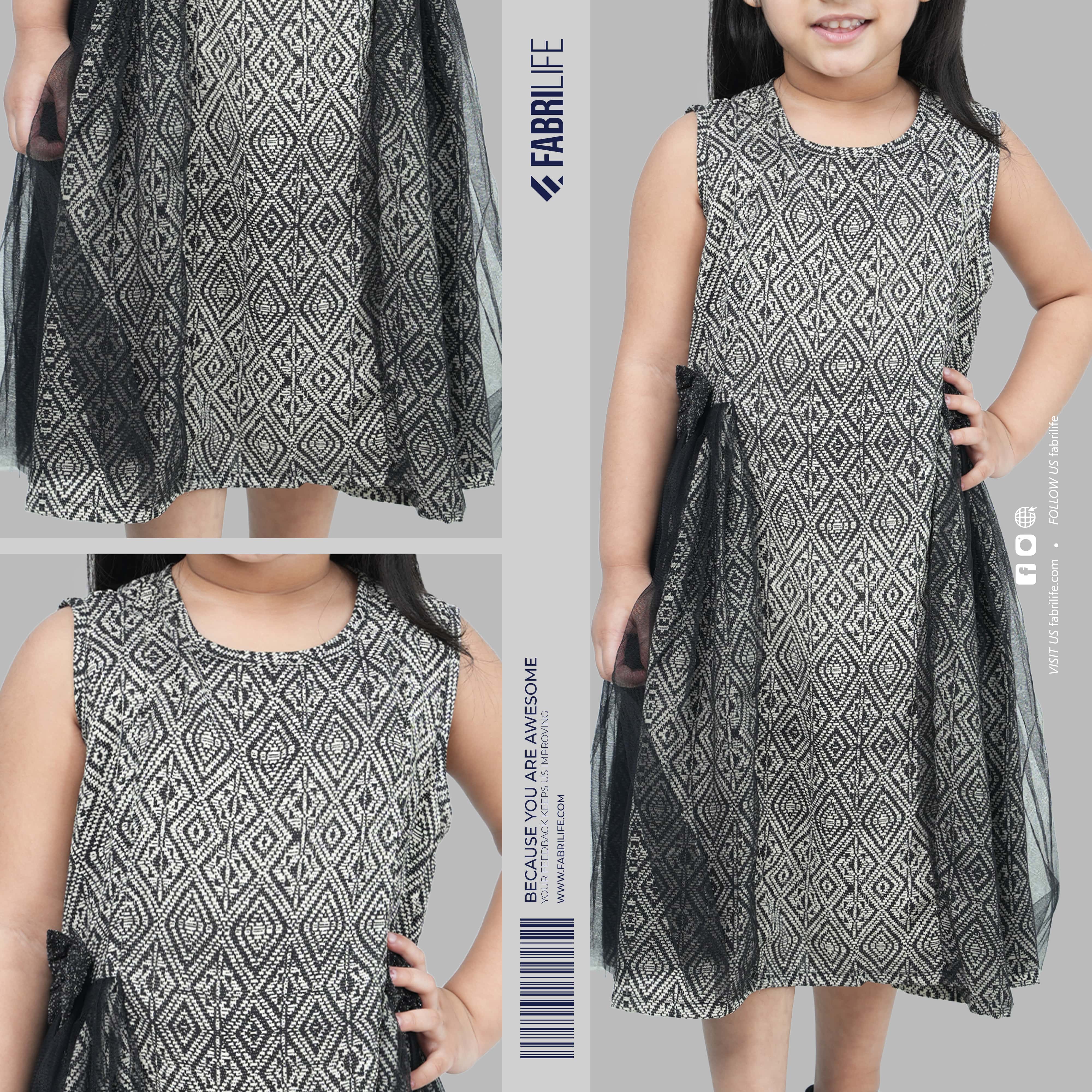 Adorn your tiny tot in this stunning Frock black creep georgette dress, perfect for special occasions or everyday elegance. Its breathable fabric makes it ideal for all-day wear, whether for school or play. The natural fibers keep her comfortable and cool throughout the day. With a relaxed fit, it's easy to style with a colorful cardigan or fun accessories.