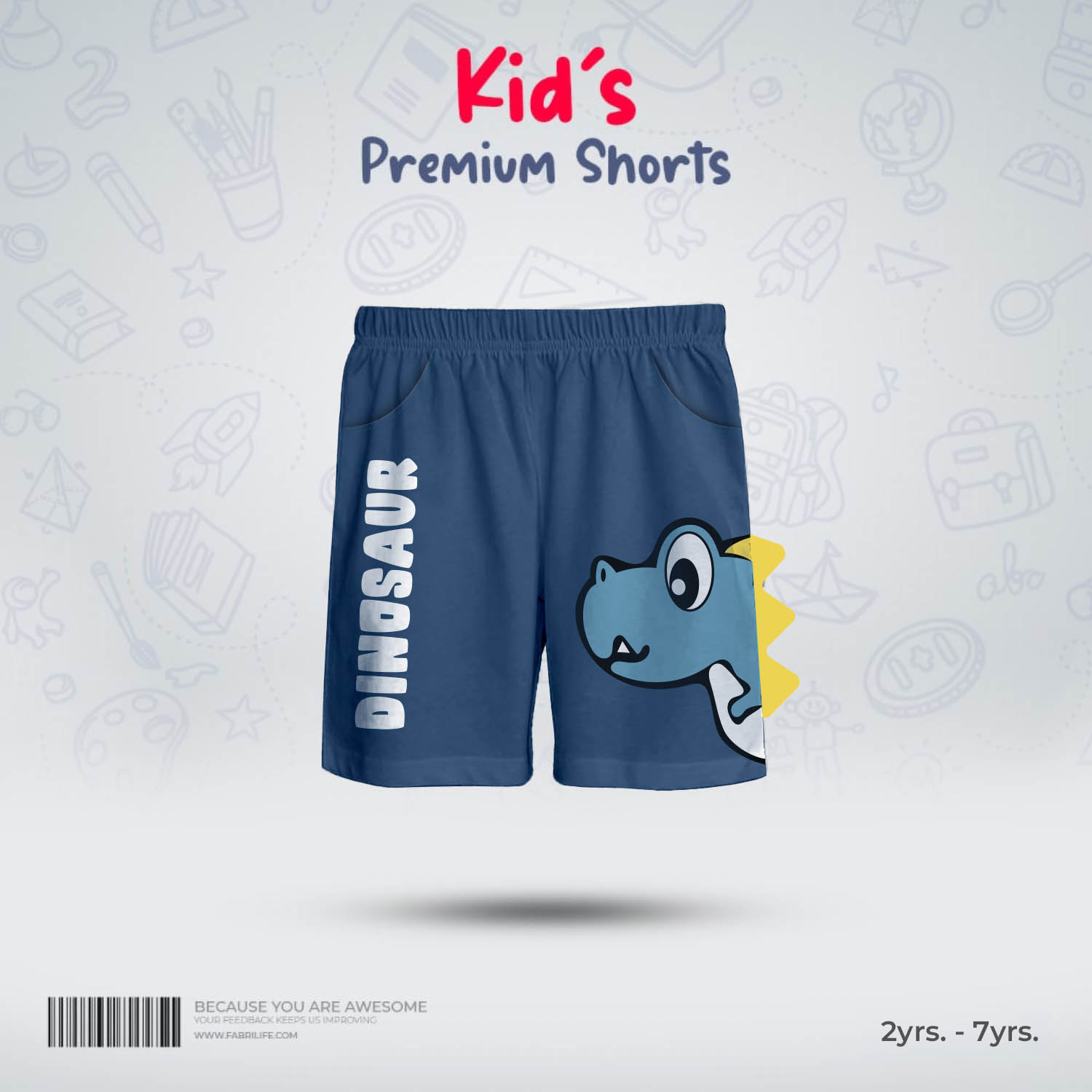 Kids Premium Cotton Shorts - Dinosaur