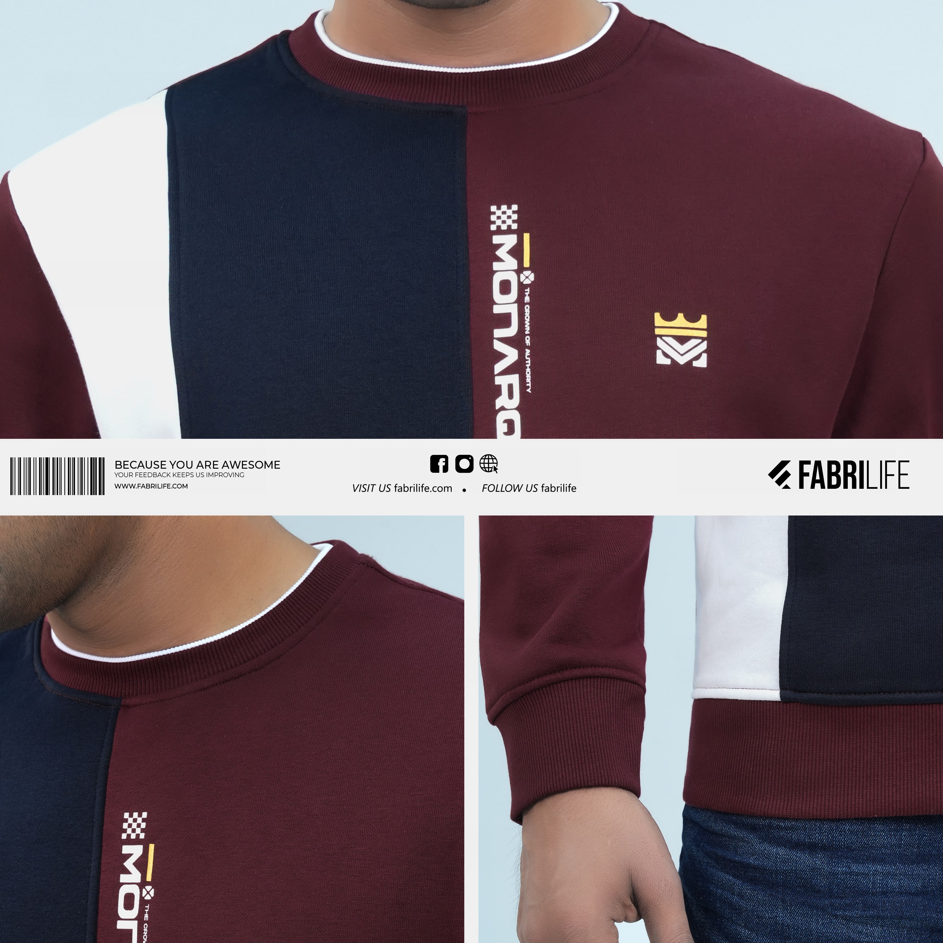 • Shell Fabric: Fleece (Red Wine + Navy + White).